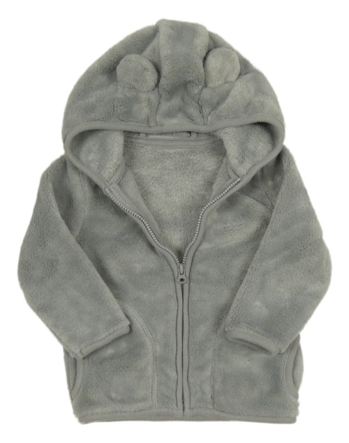 Šedá chlupatá propínací mikina s kapucí s oušky