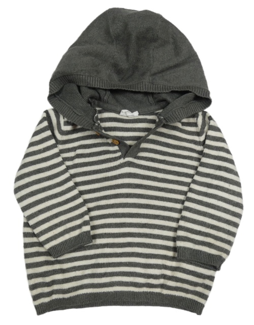 Tmavošedo-bílý pruhovaný svetr s kapucí F&F