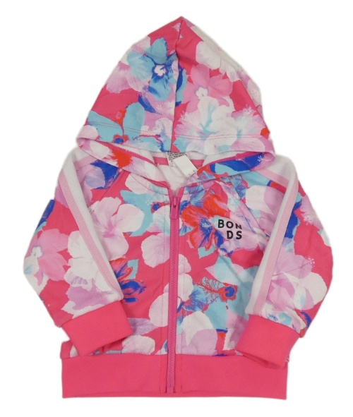 Neonově růžová květinová propínací mikina s kapucí Bonds