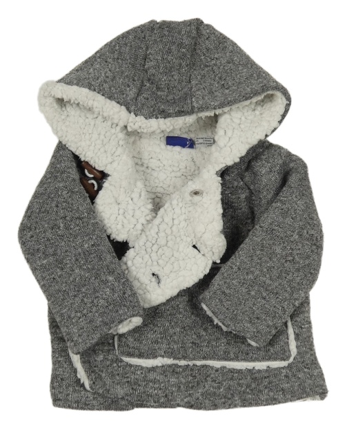 • Šedý melírovaný pletený zavinovací propínací zateplený svetr s kapsou a kapucí lupilu