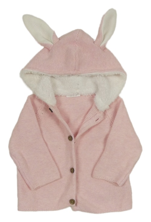 Světlerůžový melírovaný propínací svetr s kapucí s oušky Next