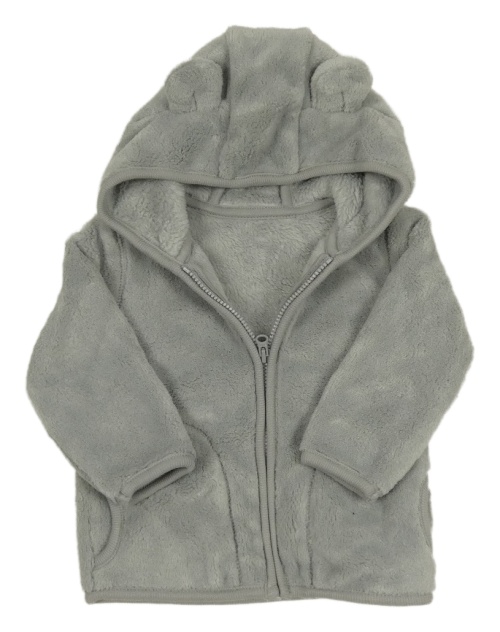 Šedá chlupatá propínací mikina s kapucí s oušky