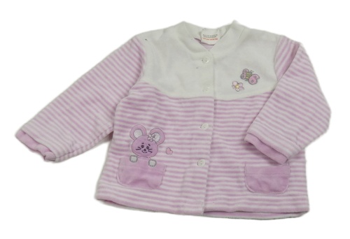 Bílo-růžová sametová propínací mikina s pruhy a myškou