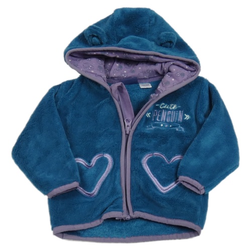 Petrolejová plyšová propínací mikina se srdíčky a kapucí Lupilu