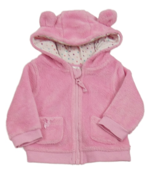Růžová chlupatá propínací mikina s kapucí s oušky M&Co.