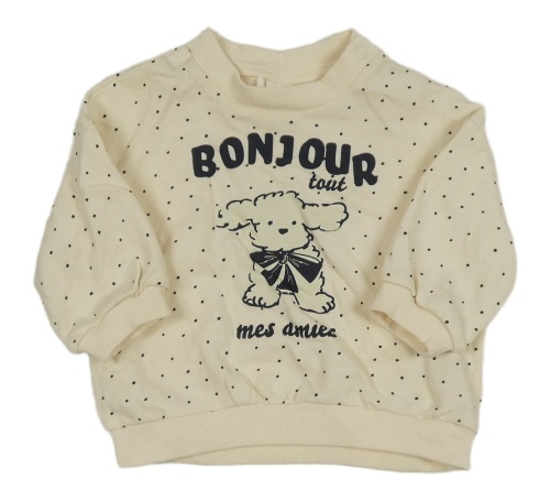 Smetanová puntíkatá oversize mikina s pejskem a nápisy H&M