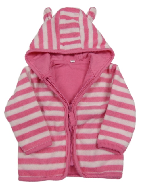 Růžovo-bílá pruhovaná propínací podšitá mikina s kapucí