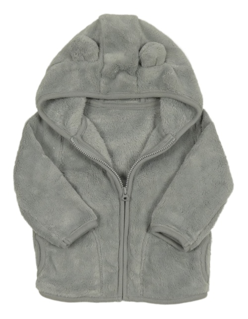 Šedá chlupatá propínací mikina s kapucí s oušky