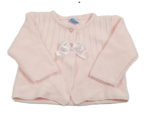 Světlerůžový pletený propínací svetr s mašlí a vzorem SARDON