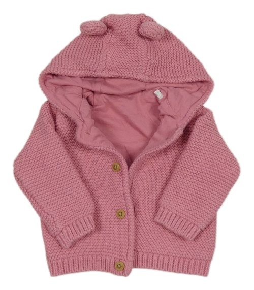 Růžový propínací podšitý svetr s kapucí s oušky M&S