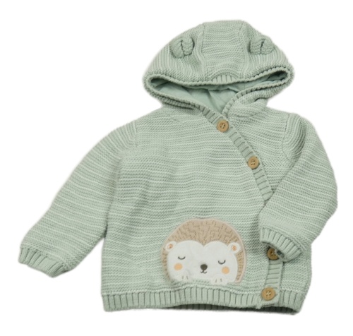 Zelený pruhovaný podšitý propínací svetr s ježkem a kapucí Mothercare
