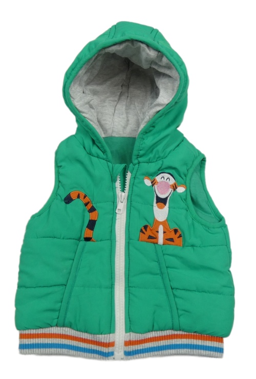 Zelená šusťáková prošívaná zateplená vesta s Tygříkem a kapucí George