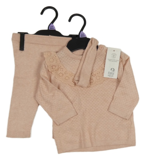 Nové - Světlerůžový perforovaný svetr s volánkem + tepláky F&F