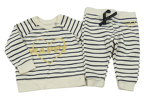 2set - Smetanovo-černá pruhovaná mikina se srdcem s nápisem + tepláky Primark