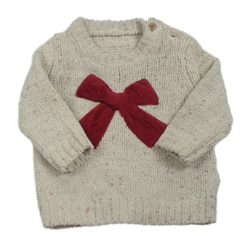 Béžovo-růžový melírovaný žinylkový svetr s mašlí George