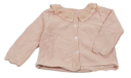 Světlerůžový vzorovaný propínací svetr se síťovinou