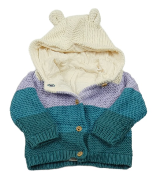 Smetanovo-lila-zelený pruhovaný podšitý svetr s kapucí M&S