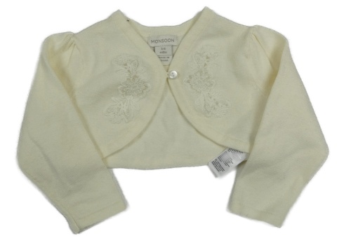 Smetanové propínací svetrové bolérko s krajkovými květy Monsoon