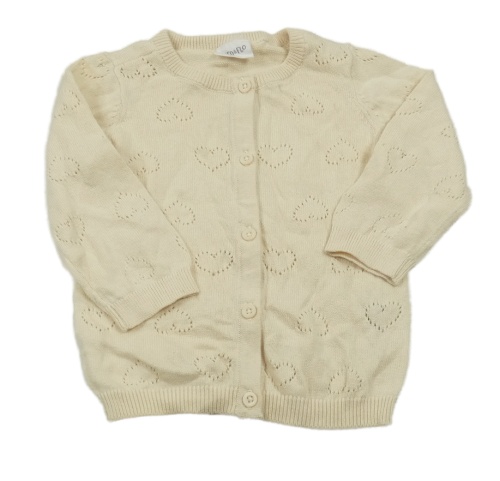 Světlebéžový propínací svetr s perforovanými srdíčky F&F