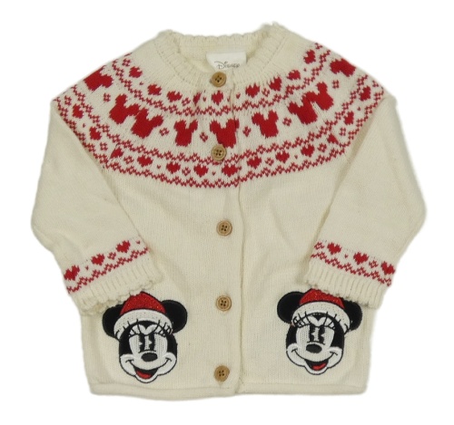 Smetanovo-červený vzorovaný propínací svetr s Minnie Disney