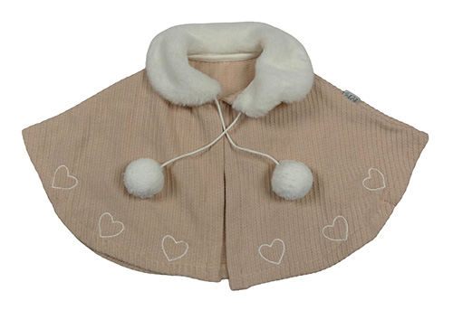 Pudrové teplákové pončo s kožešinou a srdíčky