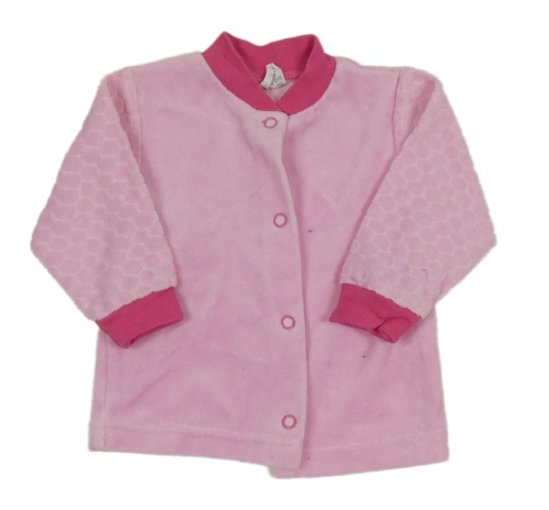Růžovo-tmavorůžová sametová propínací mikina se vzorovanými rukávy