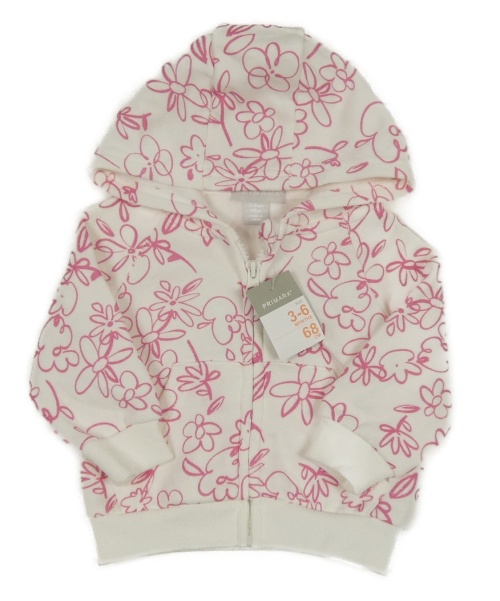 Nové - smetanová propínací mikina s růžovými kytičkami a kapucí PRIMARK