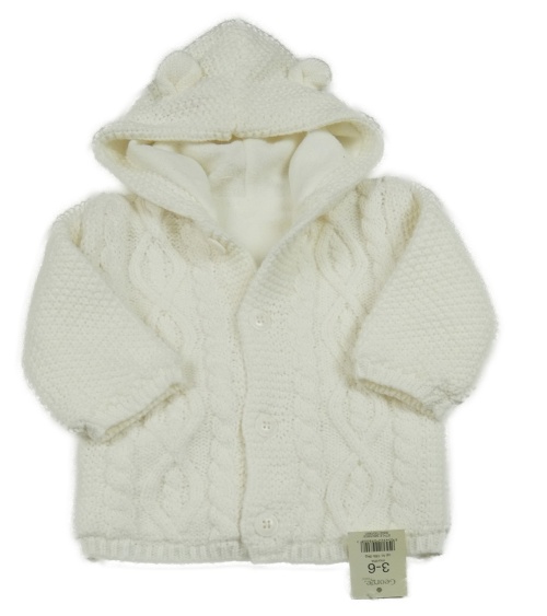 • Nové - bílý pletený vzorovaný zateplený propínací svetr s kapucí George