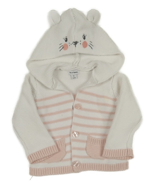 Bílo-světlerůžový pruhovaný propínací svetr s kapucí s čumáčkem Pat&Ripaton
