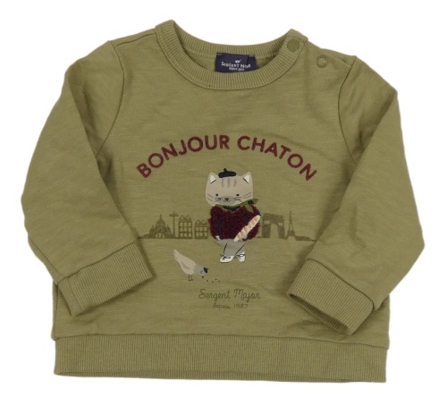 Khaki melírovaná mikina s kočičkou a nápisem SeRGeNT MaJoR