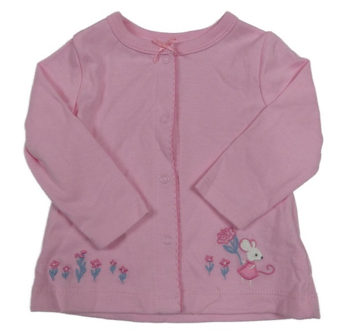 Růžové propínací mikinotriko s myškou a kytičkami a mašličkou