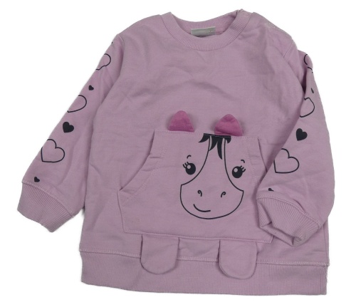 Lila mikina s čumáčkem/kapsou a srdíčky orsolino