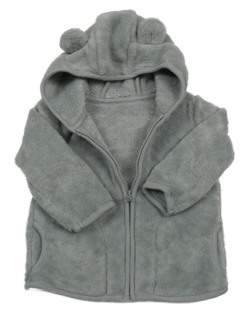 Šedá chlupatá propínací mikina s kapucí s oušky