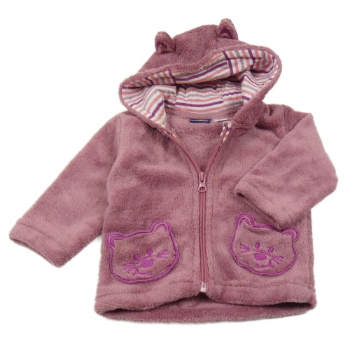 Starorůžová chlupatá propínací mikina s kočkami a kapucí Lupilu