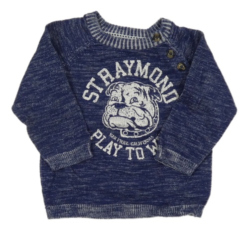 Tmavomodrý melírovaný svetr s buldokem a nápisy H&M