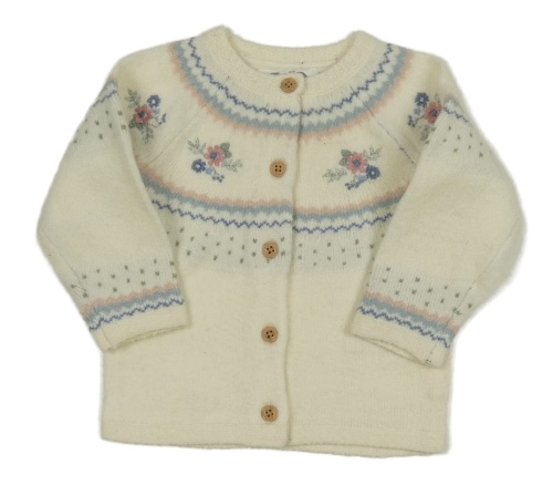 Smetanový vzorovaný propínací svetr s výšivkami květů F&F