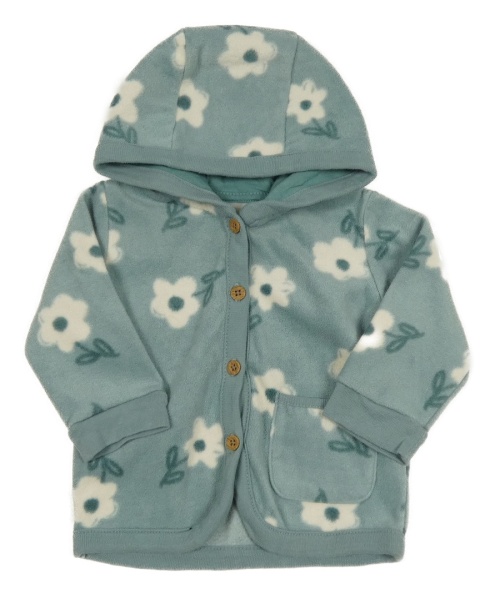 Šedomodrá fleecová propínací mikina s kytičkami a kapucí George