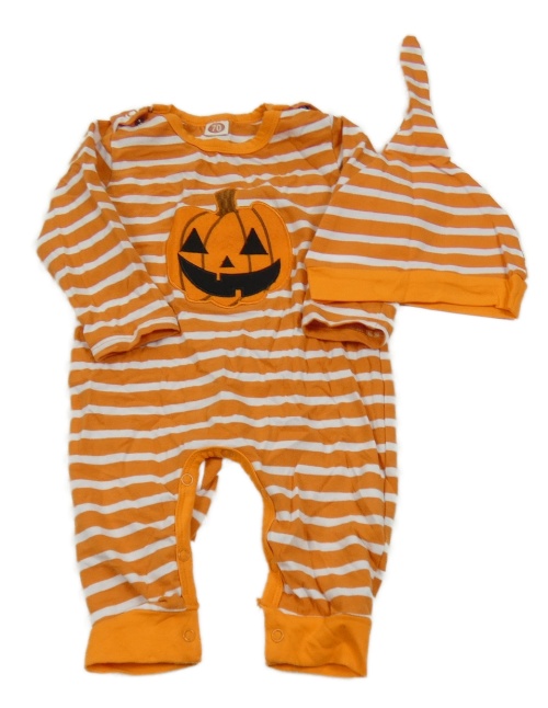 2Set - Oranžovo-bílý pruhovaný overal s dýní + čepice
