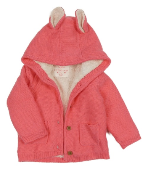 Korálový pletený propínací zateplený svetr s kapucí s oušky F&F