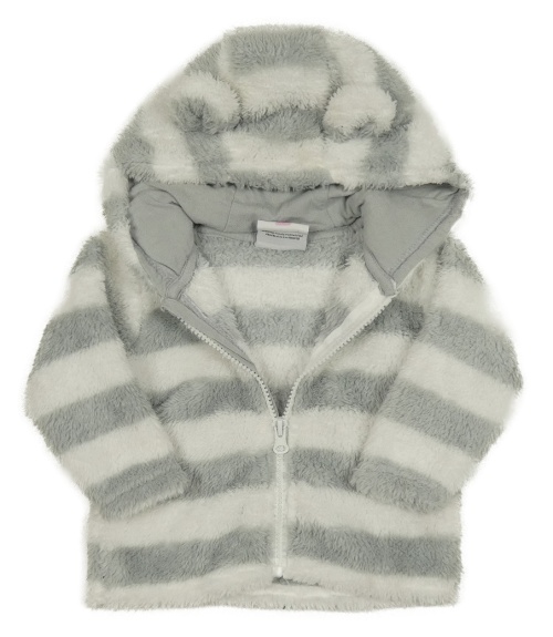 Bílo-šedá pruhovaná chlupatá propínací mikina s kapucí Topomini