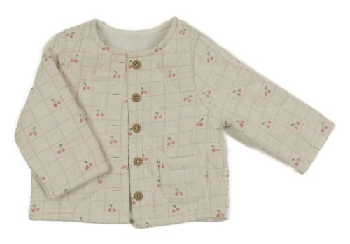 Bílo-růžová kostkovaná mušelínová zateplená propínací mikina s třešněmi George
