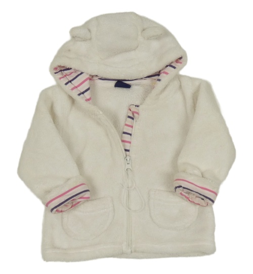Bílá chlupatá propínací mikina s kapucí a proužky Lupilu