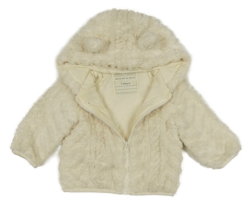Smetanová chlupatá podšitá propínací mikina s kapucí Tu