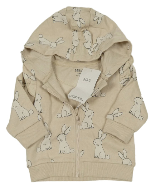 Nové - světlebéžová propínací mikina s králíčky a volánky a kapucí M&S