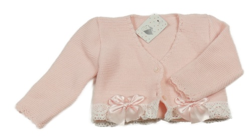 Nové - růžový propínací svetr s mašličkami