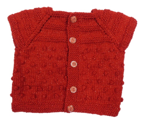 Červená melírovaná propínací svetrová vesta s 3D puntíky a třpytkami