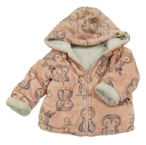 Růžová chlupatá zateplená bunda s tučňáky a kapucí F&F