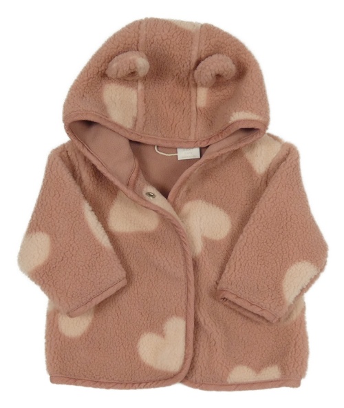 Růžová huňatá propínací mikina se srdíčky a kapucí Next
