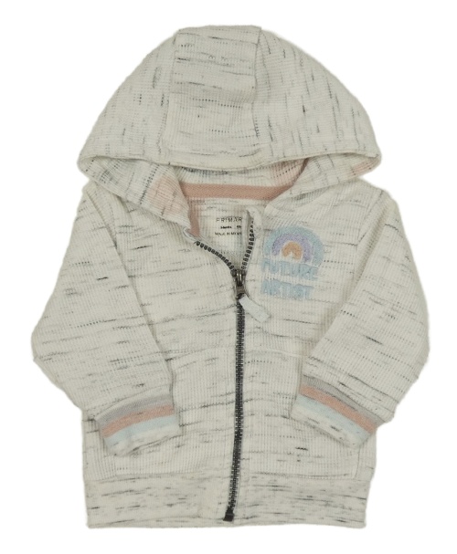 Bílo-černá melírovaná žebrovaná propínací mikina s duhou a nápisy a kapucí PRIMARK