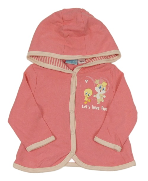 Růžová lehká propínací mikina s Tweetym a kapucí